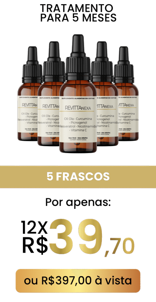 A fórmula única do RevittaNexa ativa a renovação celular, promovendo a regeneração da pele. Com a ação de ingredientes poderosos, sua pele terá uma aparência mais jovem, pois as células antigas são substituídas por novas.